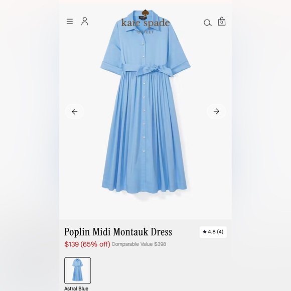 This blue midi dress by Kate Spade features a pleated skirt and cuffed short sleeves, perfect for a dressy comfortable look.