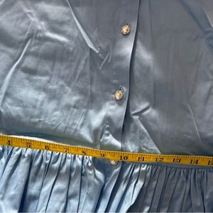 Kate Spade ♠️ Blue Midi Dress with Pleated Skirt and Cuffed Sleeves