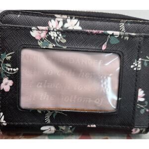 Kate Spade Staci Ditsy Buds Small Zip Around Wallet Black Pink 3.5 X 5 Inch