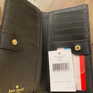 Kate Spade Staci Large Slim Bifold Wallet Black Textured Leather (NWT)