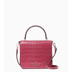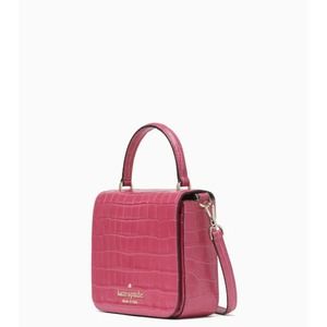 Kate Spade Staci Square Croc Embossed Leather Satchel Crossbody Festive Pink NWT