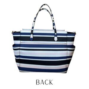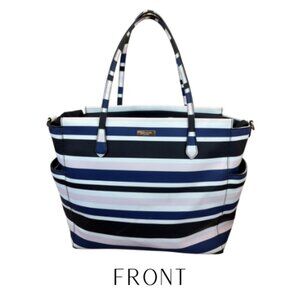 This is actually a baby bag, however I used it as a travel bag. It can store a lot, double slide pockets and a zipper pocket. Some scuffs. Only used a few times. Changing pad and cross body strap not included. Smoke free, pet free home. 12.9"h x 14"w x 5.5"d, drop length: 9"