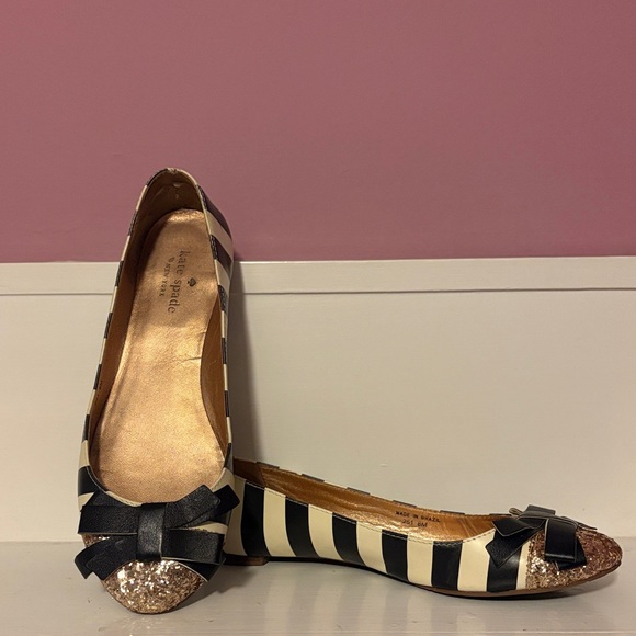 Kate Spade Striped Flats with Glitter Toe and Bow “Trixie” 8
