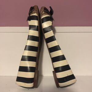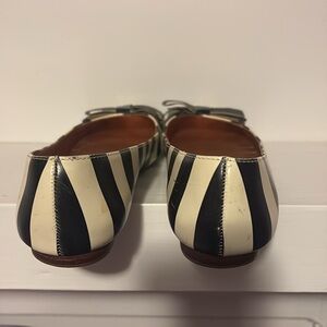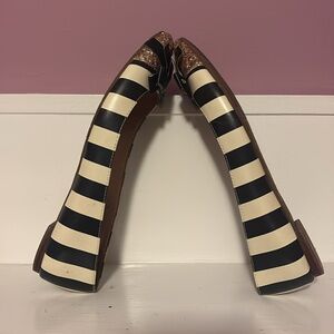 Elegant flats with black and white stripes. Glittery toe adds sparkle. Finished with a stylish bow. “Trixie” from Kate Spade in size 8. Comes with box.