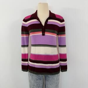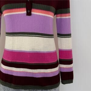 Kate Spade Striped Wool Polo Sweater Long Sleeve Collar Multicolor Maroon Size S