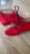 Good used condition. The upper suede area is nearly new, there are some little spots of dirt as shown. The soles of the shoe, including the heel stopper are visibly worn. The heel stoppers should probably be replaced.