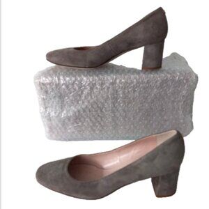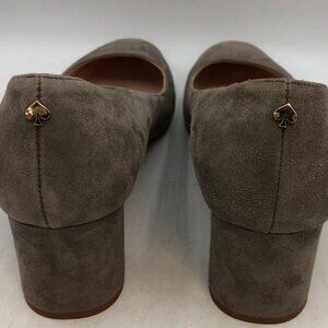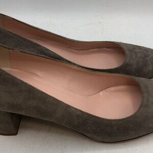 Kate Spade Suede Pumps Sz 6 M Taupe Square Toe Block Heel Slip-On Made in Italy