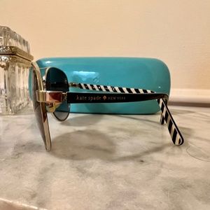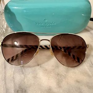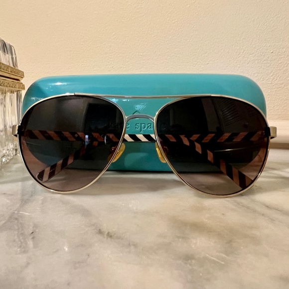 Kate Spade Aviator Sunglasses. Black/Grey lens. Silver frame. Striped interior. Case included.