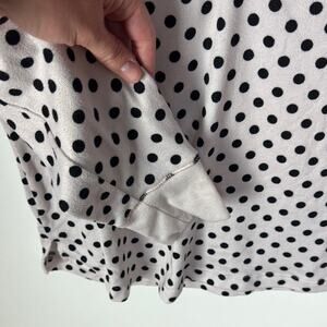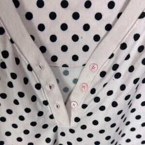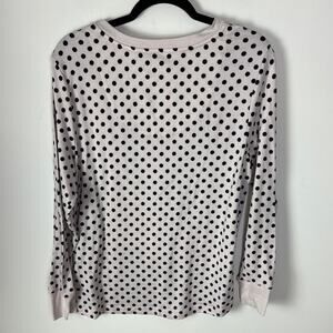 Gently Used Kate Spade Button Down V-Neck Sweater. This is a women's large. Very light pink with black polka dots throughout. Very soft! 95% polyester, 5% elastane.