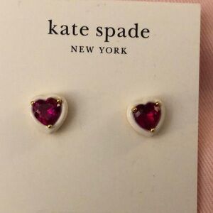 Kate Spade Sweetheart Heart Shaped Stud Earrings White Frame Red CZ Accent NWT