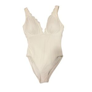 Kate Spade Swimwear, Scallop V-Neck One Piece Swimsuit, Ivory Large NWT
