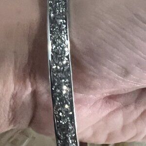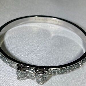Pre-loved. kate spade “take a bow” silver glitter bangle bracelet. Circumference is 2.5”. Excellent condition.