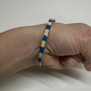 Kate Spade Take a Bow Bangle Bracelet Striped Navy Blue White 12K Gold Plated