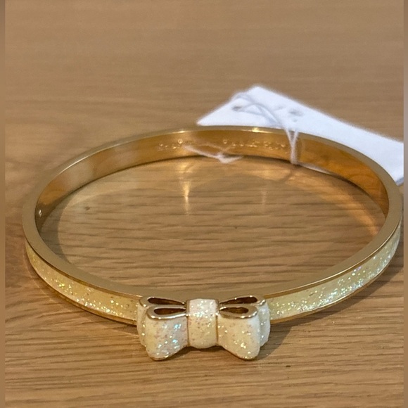 Kate Spade Take a Bow Enameled Bangle Bracelet Glitter NEW