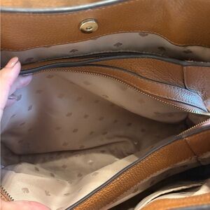 Chic and versatile tan leather bag. Ideal for daily use. Features a sleek design. Tons for room for everything! GREAT FOR TEACHERS!!!