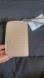 This elegant Kate Spade wristlet in tan leather is a perfect blend of style and functionality. Featuring a sleek design with gold-tone hardware, it offers a sophisticated touch to any ensemble. Ideal for carrying essentials, this compact accessory is a must-have for those who appreciate timeless fashion. Approximately 6X4.