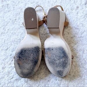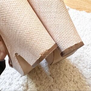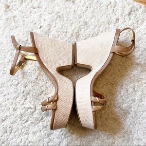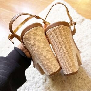 Kate Spade Tan Metallic Gold Straw Block Platform Wedge Sandals Size 7.5