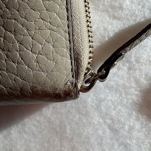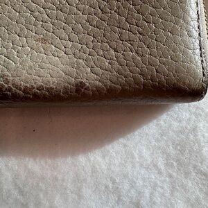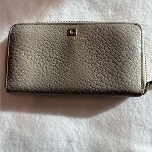 Elegant tan wallet by Kate Spade. Features pebbled leather texture. Perfect for organizing essentials.