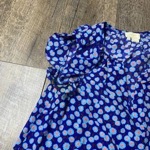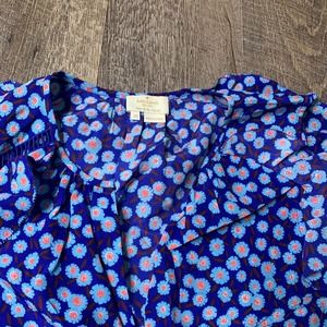 Kate Spade Tangier Silk Tank Blouse Womens Size XS Cobalt Blue Floral Ruffle