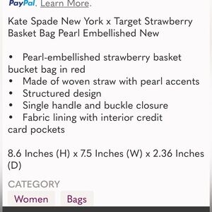 Kate Spade Target Pearl Embellished Strawberry Basket Bucket Bag new 🆕
