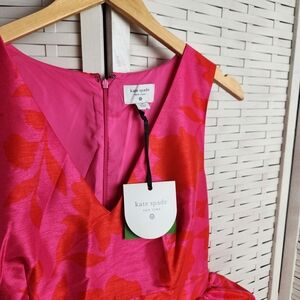 This Kate Spade x Target dress is new with tags. The bright pink and orange floral fabric is perfect for a garden party. It's sleeveless with ruffles around the waist. There is a zipper in the back. Size 10.