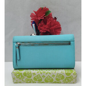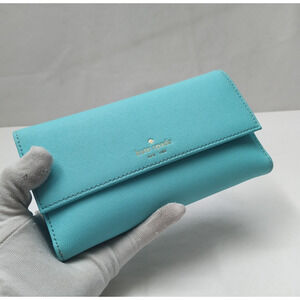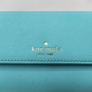 Kate Spade Teal Light Blue Leather Credit Card Trifold Wallet