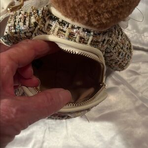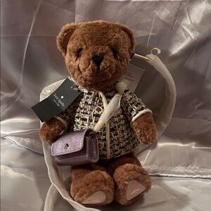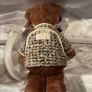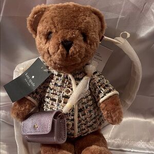 Kate Spade teddy bear Crossbody bag new with tags retails $449 comes with her own little purse on the front and she opens in the back so you can carry stuff. She is so cute.
