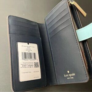Kate Spade New York Grand Slam Medium Compact Bifold Wallet In Blue Multi NWT