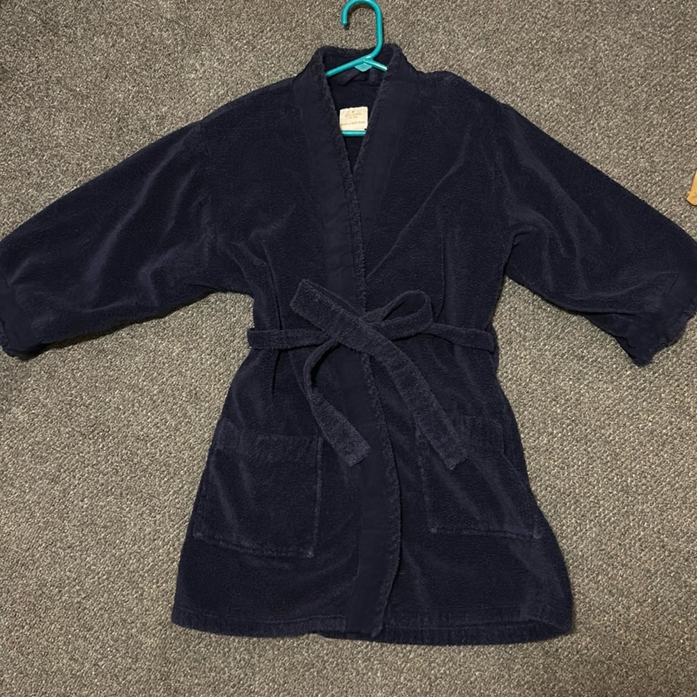 EUC, Terry cloth robe in in navy, size XS/S. Hits above the knee, 3/4 sleeves. 2 pockets and an inside tie to help keep