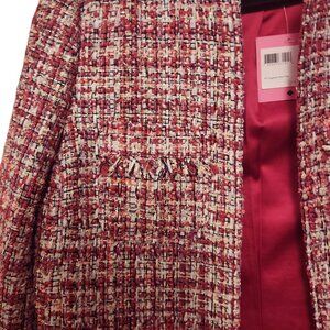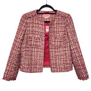Kate Spade Textured Tweed Open Jacket Size 2 Pink White