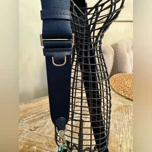The bag has a zip closure and a detachable strap with a drop range of 14-25 inches. The bag measures 8.5 inches in width, 5 inches in height, and 3 inches in depth. The interior is lined with nylon in a matching blue color. It has enough space for all your essentials.