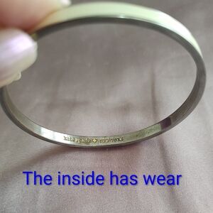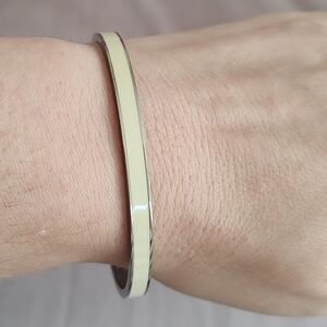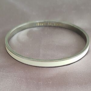 Kate Spade idiom bangle "Tickle the ivories" in ivory enamel and silver tone. Good/Fair used condition with wear on the insides. Best fit for 6.5"-7.5" wrist.