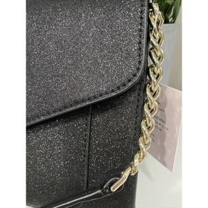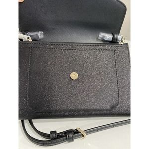 Kate Spade Tinsel Flap Crossbody Black Glitter Interior Credit Card Slots NWT