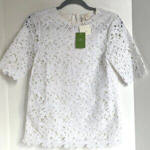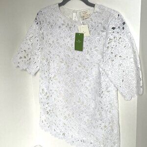 Kate Spade Top Womens 2 White Short Sleeve Floral Lace Blouse Overlay