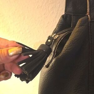 Kate Spade Top handle Pebbled leather Black Purse Bag neutral minimalist S.Large