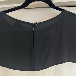 Black top has cute small ruffle detail along edges. Ask questions.