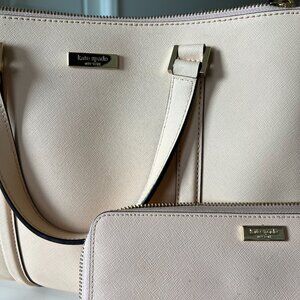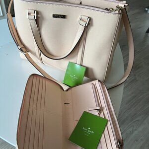 Authentic Kate Spade New York tote + matching zip-around wallet in beautiful blush pink saffiano leather.