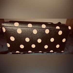 Welcome to Toures Closet where we value interesting, and practical ideas at a discount: Shipped right to your doorstep!!!, Kate Spade Clutch Purse Description Kate Spade - New York Tote bag - shoulder purse - Black - Polka Dot Print - Gold-Tone Hardware - Rolled Handles - Logo Jacquard Lining & Three Interior Pockets - Zip Closure at Top - gently used - some minor wear at the base and side panel. Shoulder Purse measurements - inches Handle Drop: 4" Height: 8.25" Width: 13.25" Depth: 5" Please accept my offer or make a reasonable counter offer!? Tags Kate Spade Totebag - Polkadot - Pink Black - Y2k Shoulder Purse - Clutch Purse