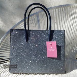 Kate Spade Glitter Lola Satchel Tote Dusk NAVY new w tag set