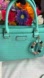 Chic turquoise satchel with stylish beaded detail. Perfect for adding flair.