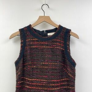 Kate Spade Tweed Knit Fringe Sleeveless Sheath Mini Dress Preppy Black 8