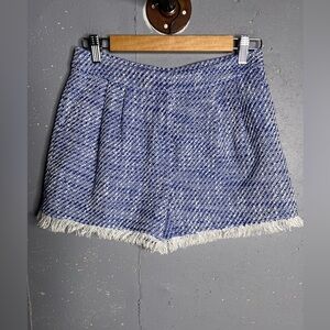 Kate Spade Tweed Shorts in blue, with beautiful inner lining, pockets and fringe hem.