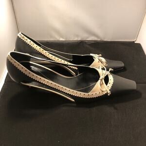 Black and Cream leather heels. Two tone. Square Toe heels. Oxford style pump heel. Excellent pre-owned condition. Size 8.5. Does not include box or dust bag.
