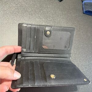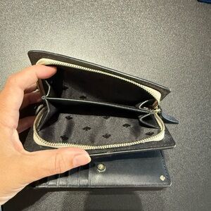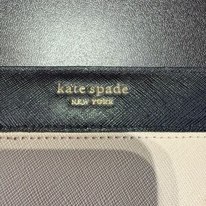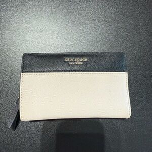 Elegant two-tone wallet by Kate Spade. Features a sleek black and cream design. Ideal for daily essentials. In perfect condition