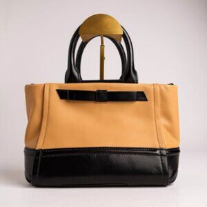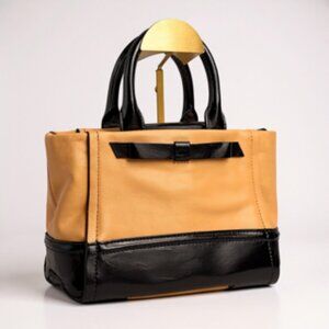 Kate Spade Two-Tone Camel & Black Patent Leather Bow Satchel Bag โ Shoulder Cros