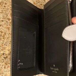 Elegant Kate Spade wallet with a two-tone design. Features gray and cream colors. Ideal for stylish organization.