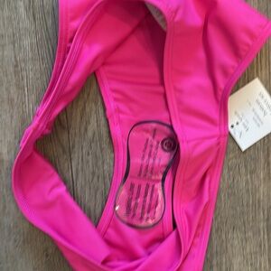 Chic bikini set by Kate Spade in a bold pink hue. Features a stylish knot on the bandeau top with matching bottoms.