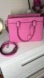 Bold pink satchel with sleek design. Perfect for daily use. Features sturdy handles and detachable strap. Worn 2 times, in excellent condition, one minor white scratch at the bottom (in photos)