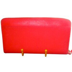 This vibrant red wallet from Kate Spade is crafted from luxurious saffiano leather, offering a sleek and minimalist design. Its structured form ensures it maintains its shape, making it a standout accessory for any occasion.