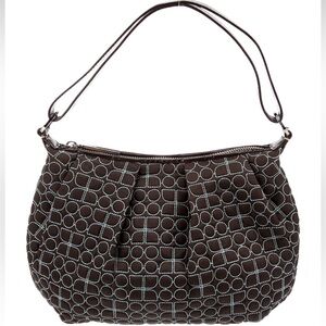Discoloration on the inside by the zipper-see pictures. Outside and handles in great condition.